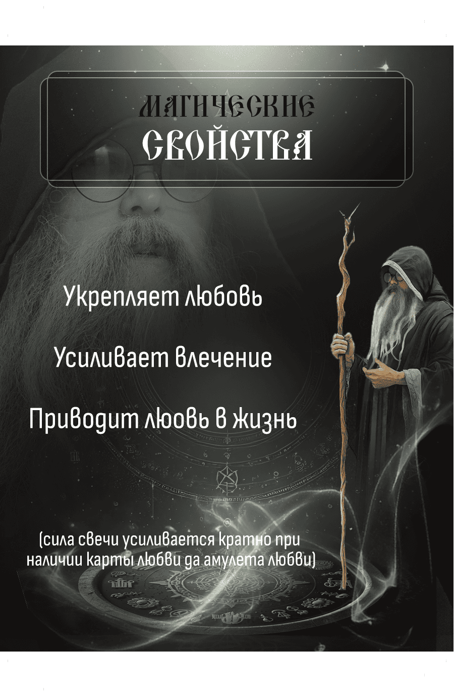 Свеча усиливает твои намерения и помогает направить их в нужное русло. Она способствует гармонии в отношениях, усиливая взаимопонимание и привязанность между любящими сердцами. Свеча создаёт защитное поле вокруг твоей любви, оберегая её от негативных влияний и поддерживая её пламя.