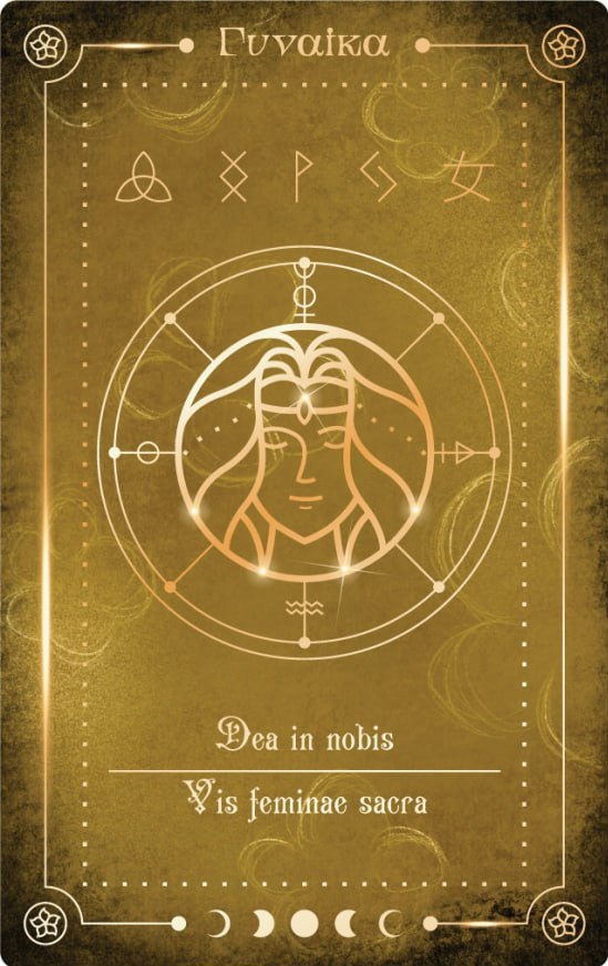 Γυναίκα (Gynaika): Надпись на древнегреческом, означающая "женщина". Она усиливает внутреннюю женскую силу, помогая вернуть утраченные энергии.