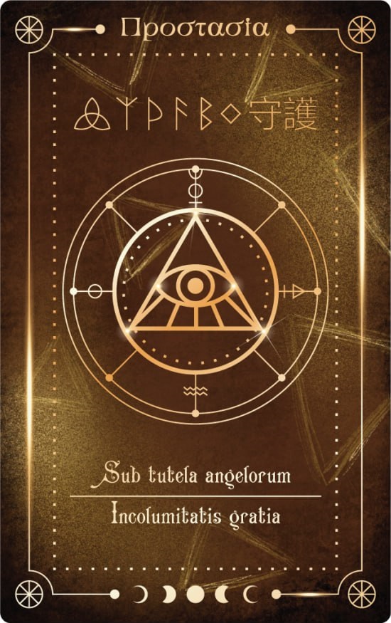 Προστασία (Prostasia): Надпись на древнегреческом, означающая "защита". Она призывает силы вселенной на охрану владельца карты.